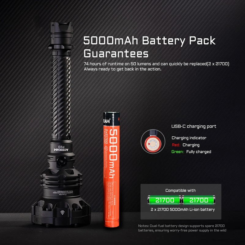 Acebeam liefert eine zuverlässige, robuste, leistungsstarke Lampe für eine Vielzahl von Situationen, die sich besonders für den taktischen Einsatz, den Jagdeinsatz, den Einsatz im Freien und den professionellen Einsatz eignet.