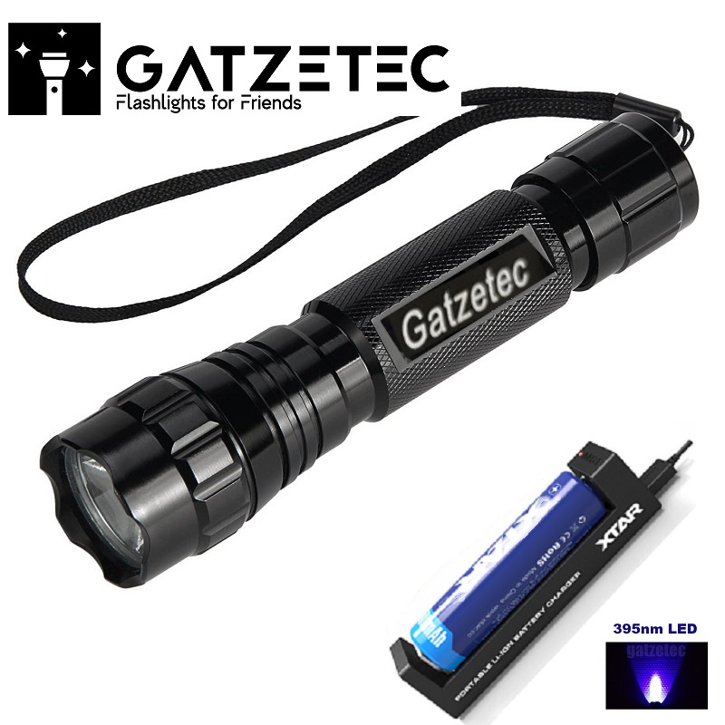 Gatzetec WF501B UV LED Taschenlampe 395 nm plus Ladegerät plus 18650 Akku