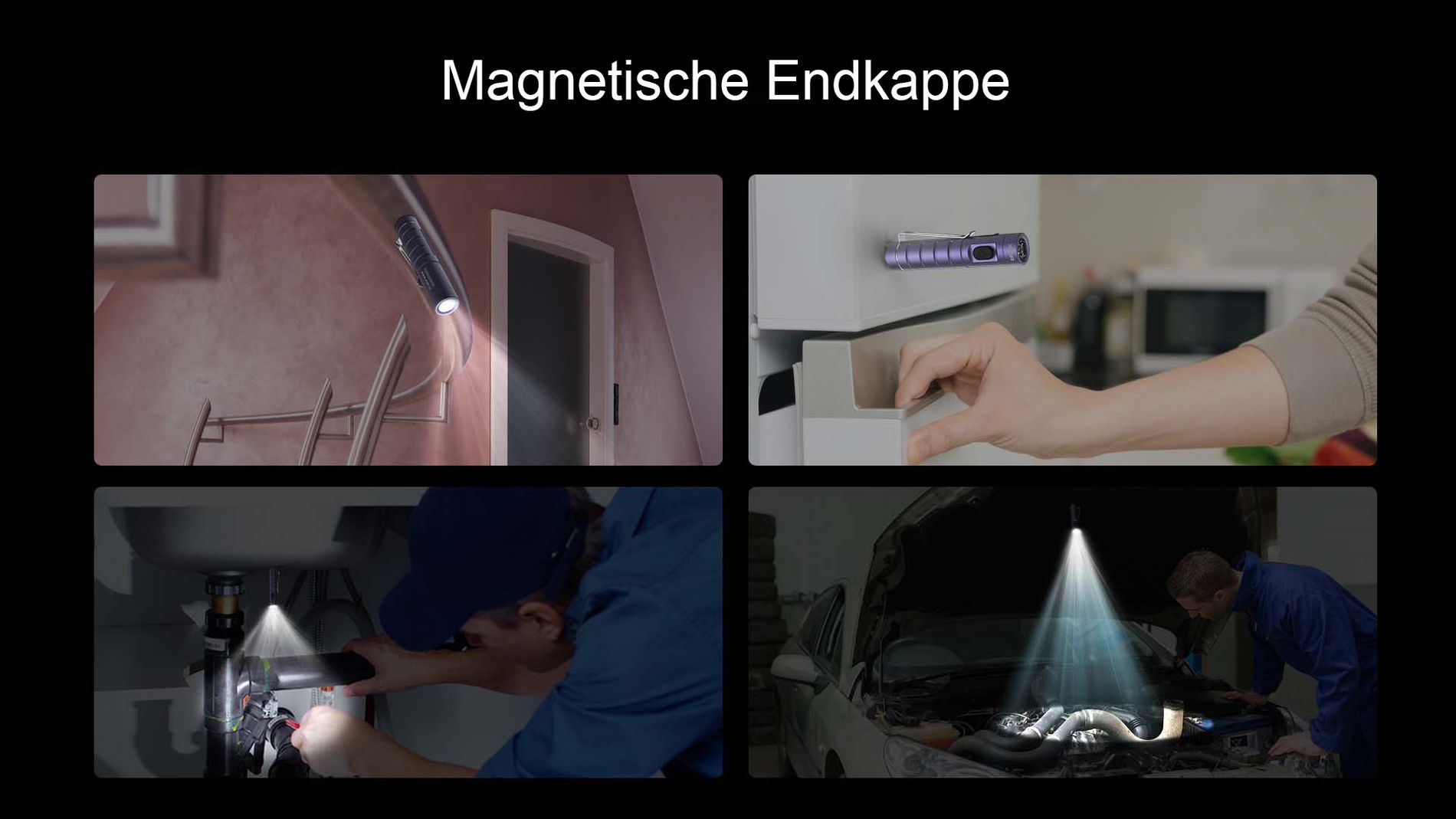 Durch die magnetische Endkappe ist ein befestigen der Mini Lampe an metalischen Gegenständen möglich.