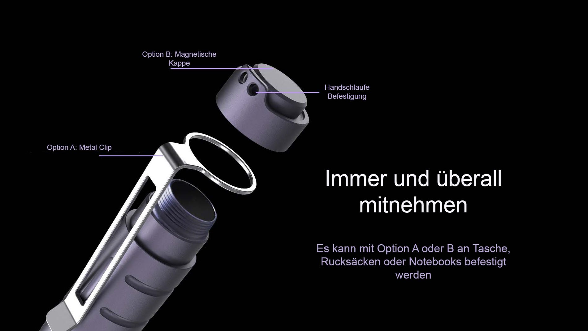 • Magnetische Endkappe & abnehmbarer Taschenclip